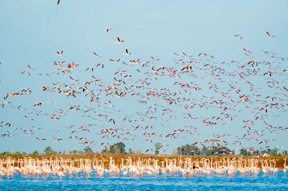 A continuación, terminaremos nuestra excursión al Delta del Ebro dando un paseo en barco por la desembocadura del río. Desde la embarcación, podremos observar la isla de Buda y los extensos campos de arroz. Atentos, ya que es muy probable que veamos aves como flamencos o gaviotas.